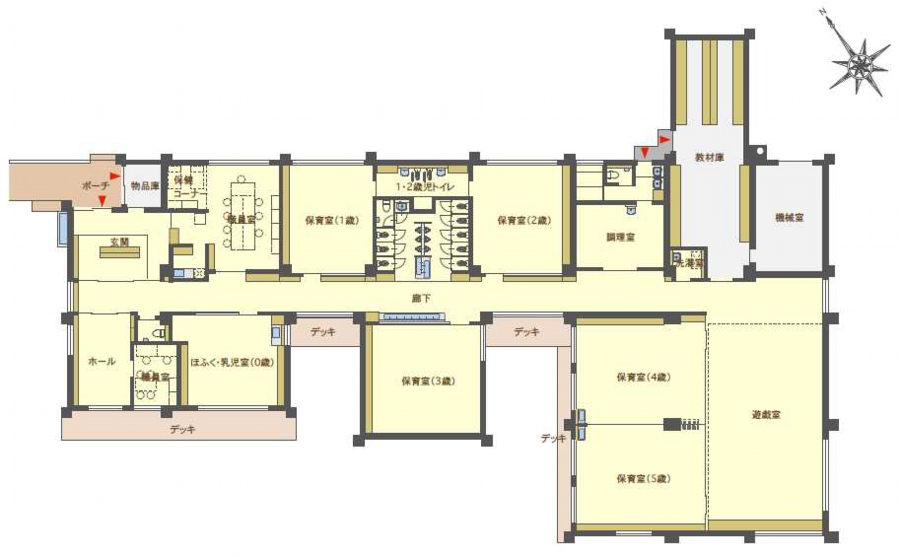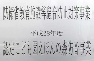 「認定こども園えほんの森」は、防衛省の平成28年度防音工事補助事業を受け、建設されています。