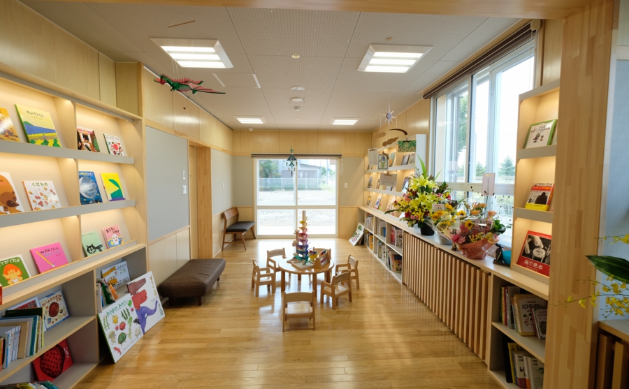 エントランスの「えほんコーナー」道内初の大型遊具!