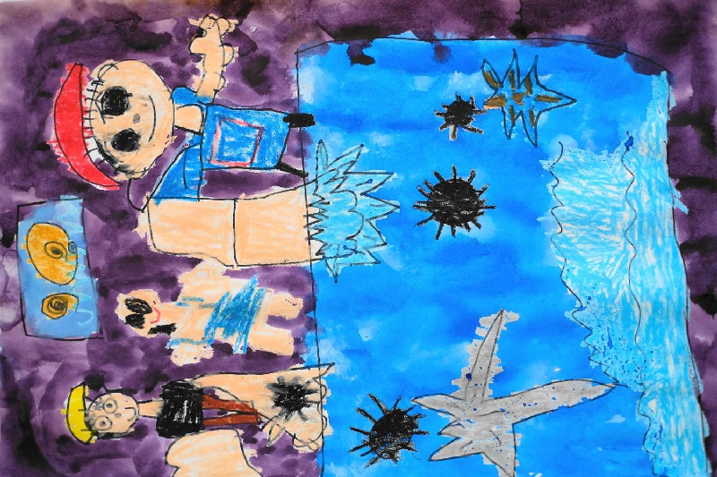 すみれ・すずらん組さんは「宇宙」をテーマにして作りました。